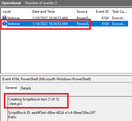 Running test.ps1 created 2 events