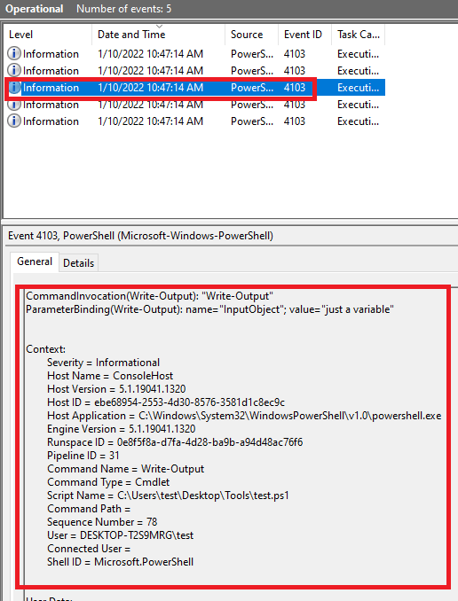 Module logs show how PowerShell commands/code are executed in PowerShell, capturing tons of useful information like variable initialization and other useful data not captured by any of the other logs. Module log data will be logged as each command is processed, creating individual events for each one.