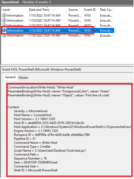 Running test.ps1 created 3 events